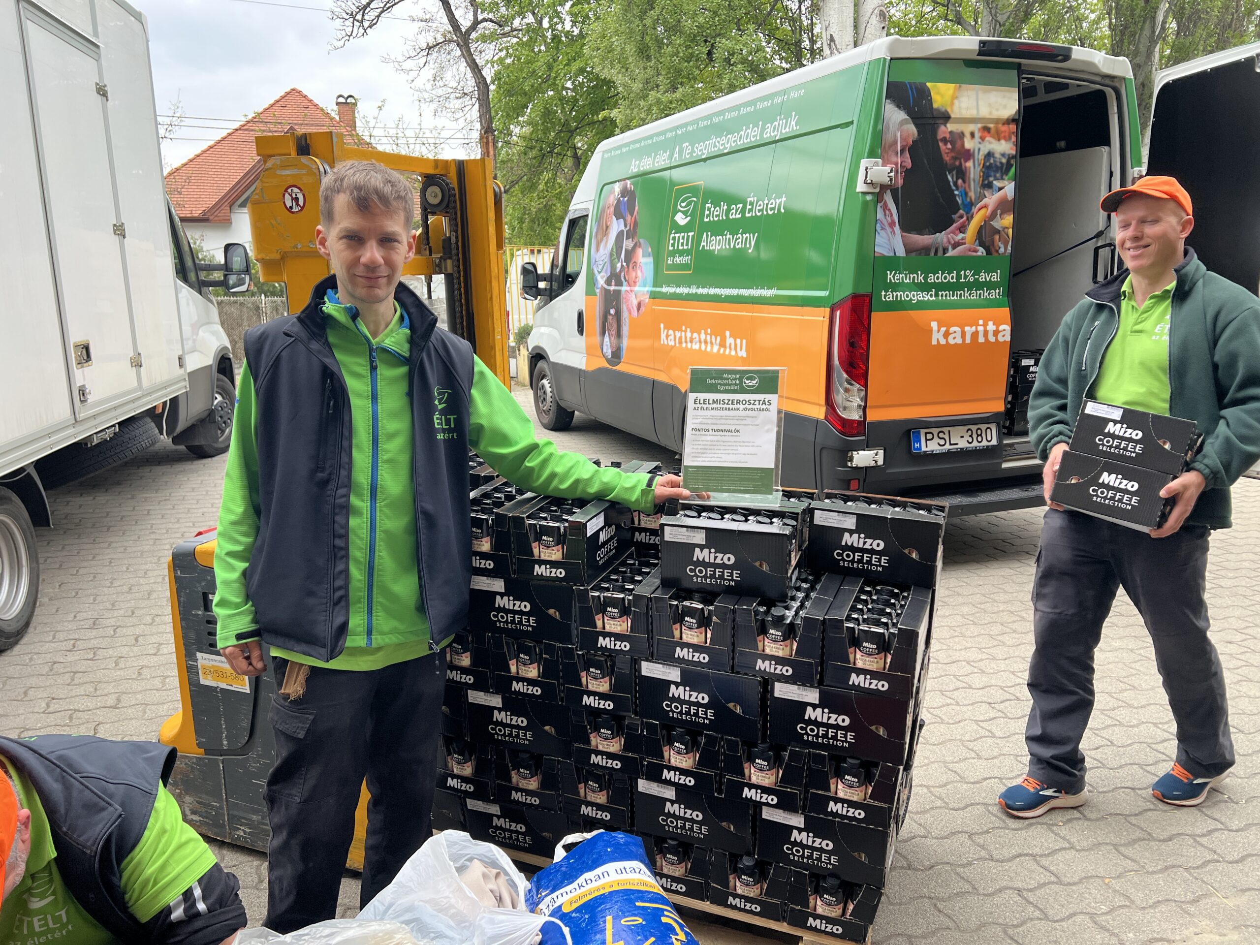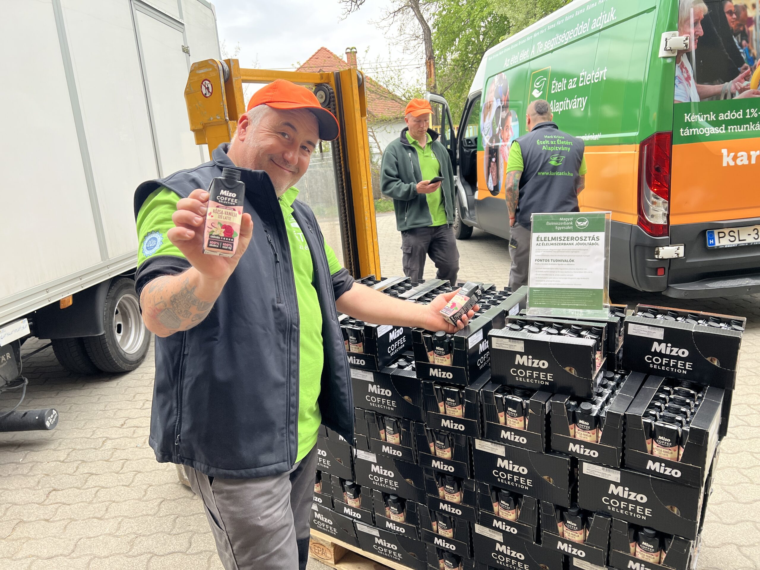 Az Élelmiszerbank jóvoltából 3120 doboz Mizo rózsa–vanília ízű lattét kaptunk, amelyeket már ma megkezdtünk kiosztani.
