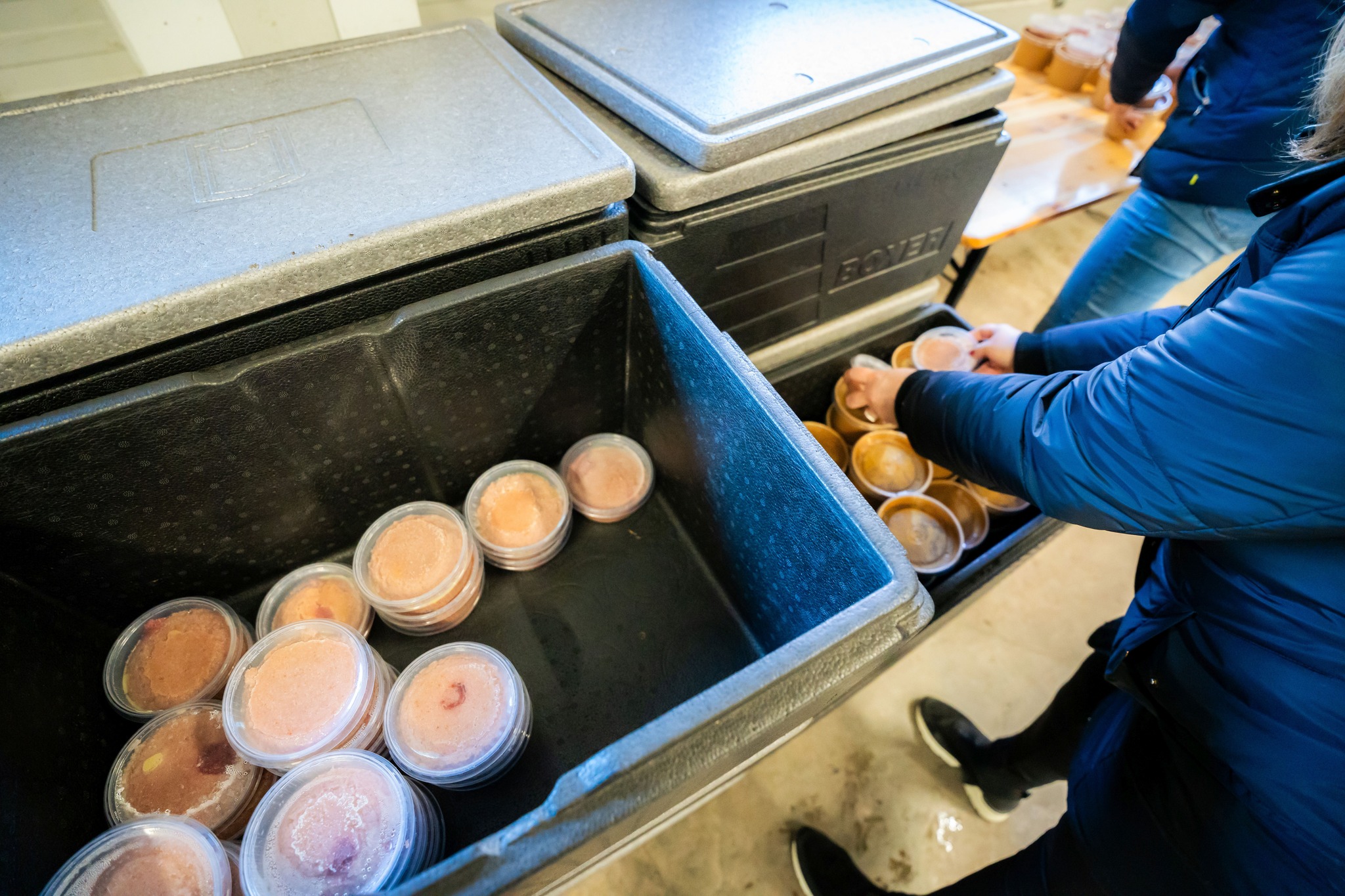 Az ételosztás gördülékenyen zajlott: 300 ember kapott meleg ételt és gazdag tartós élelmiszercsomagot. A falubuszok turnusokban érkeztek, mindenki tudta, mikor jön sorra, így nyugodt, méltóságteljes volt a kiosztás. Jó volt látni, hogy a közös tanulás és a helyi összefogás valódi eredményt hozott.