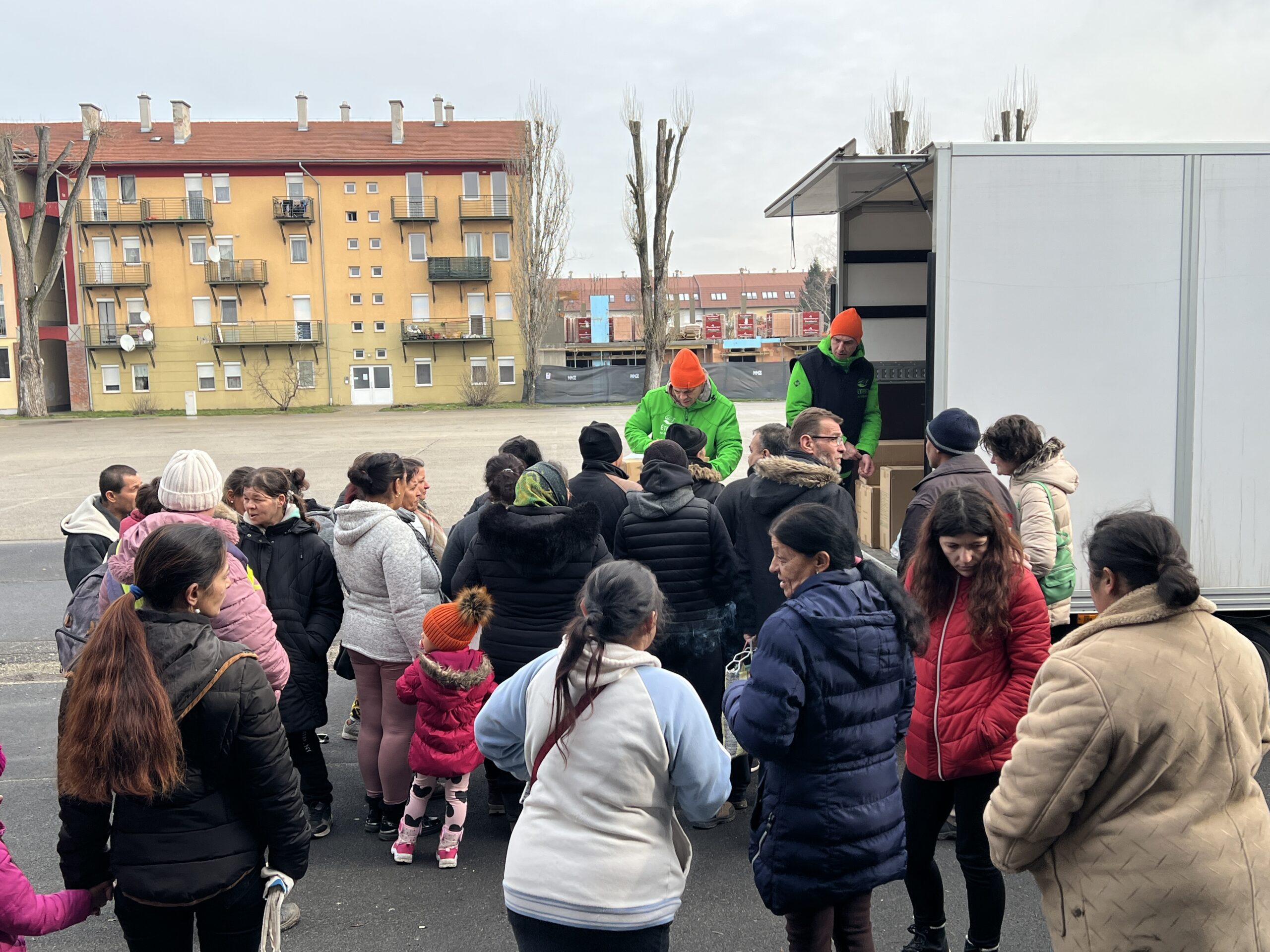 Az ételosztó pontokon összesen 200 darab gazdag tartós élelmiszer csomagot adtunk át a családoknak, valamint forró krumplis tésztával is megvendégeltük az érkezőket. Ezek az alkalmak nem csupán az éhség csillapításáról szóltak, hanem arról is, hogy a nehéz helyzetben élők érezzék: nincsenek egyedül.