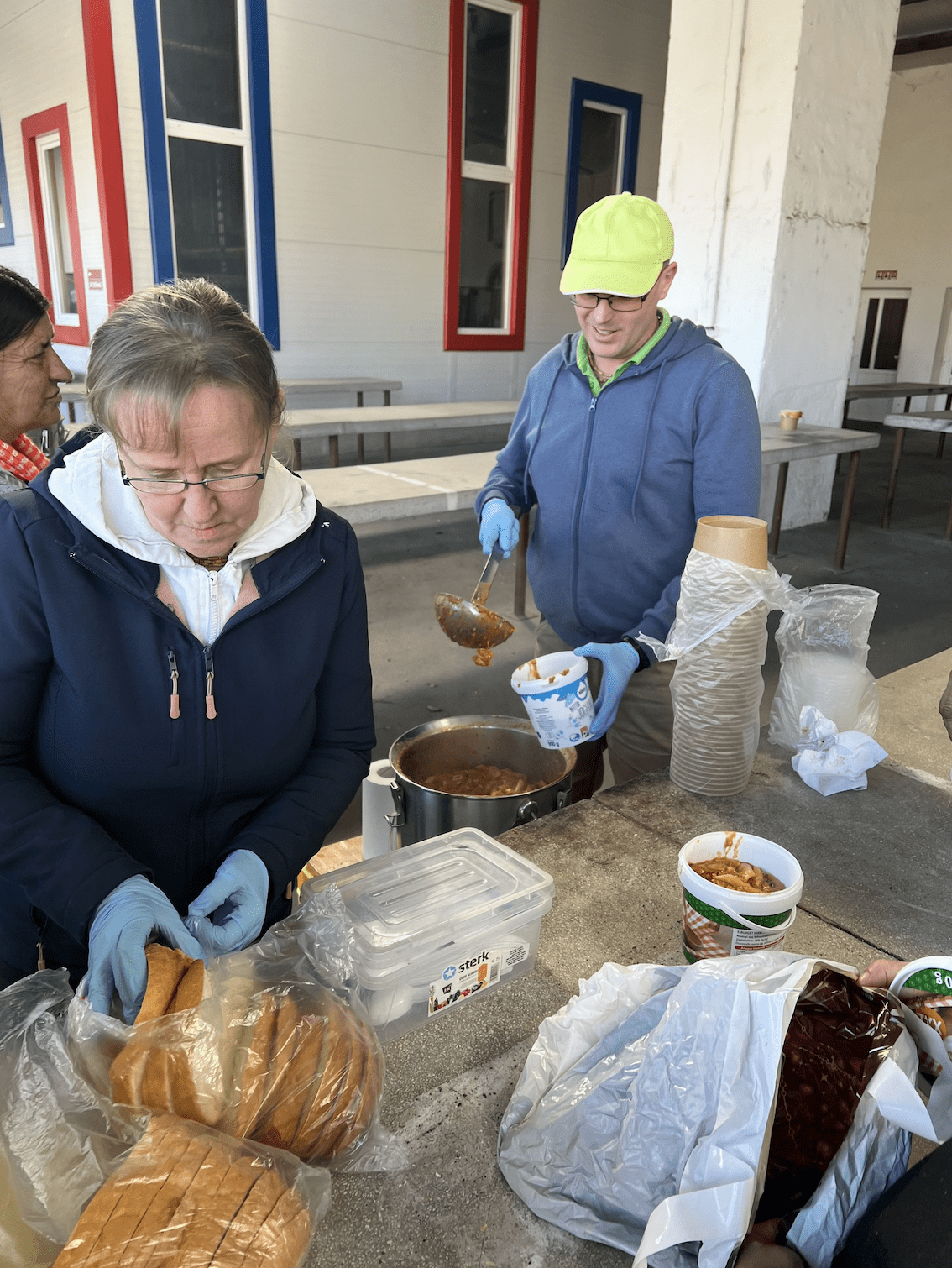 Az ételosztó pontokon összesen 200 darab gazdag tartós élelmiszer csomagot adtunk át a családoknak, valamint forró krumplis tésztával is megvendégeltük az érkezőket. Ezek az alkalmak nem csupán az éhség csillapításáról szóltak, hanem arról is, hogy a nehéz helyzetben élők érezzék: nincsenek egyedül.