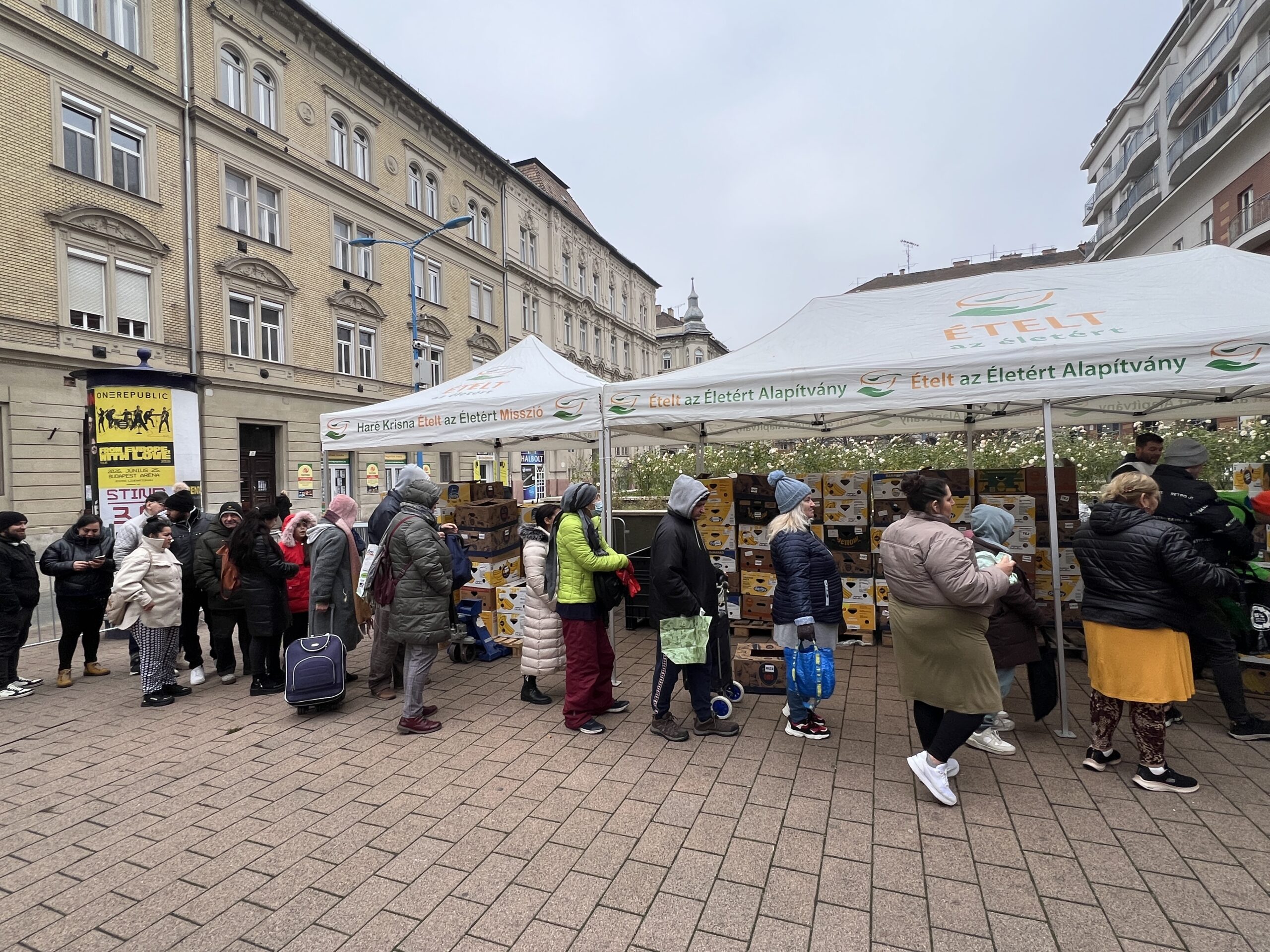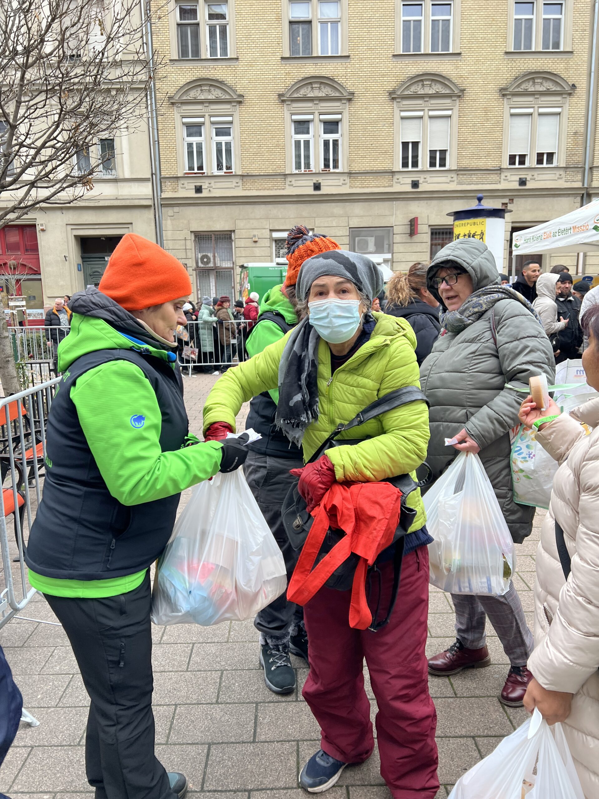 A Garay téren 350 darab gazdag élelmiszercsomagot és meleg székelykáposztát osztottunk ki. Az eseményen több neves személyiség segédkezett. Jelen volt Szücs Balázs, Erzsébetváros civil alpolgármestere, aki személyesen, saját kezűleg adta át az ebédet a kerület lakosainak és Bányai Miklós színművész is, aki a halavát osztotta.